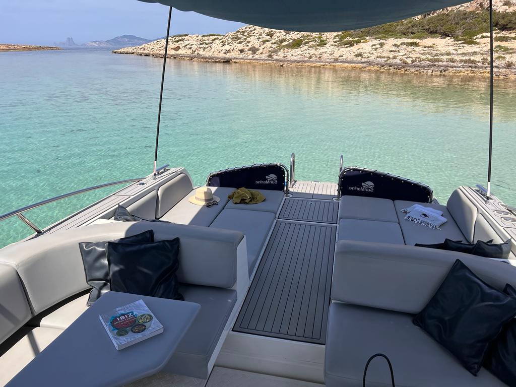 lancha de Quer tiene su puerto base en Marina Ibiza, considerada la marina más bonita de España. Está amarrado en el lugar G3, uno de los mejores amarres del puerto, el acceso al barco es fácil, incluso para personas con movilidad reducida. Es un barco perfecto para grupos de amigos o familiares que deseen pasar el día entre Ibiza y Formentera. Descubre los fondeaderos más bonitos en nuestro blog. También puedes contactar con Béatrice por WhatsApp, ella te ayudará a organizar tu salida (restaurantes, consejos sobre los lugares que no puedes perderte, organización de un picnic a bordo del barco, etc.). Durante muchos años, Béatrice ha forjado una estrecha relación con los restaurantes de playa de IBIZA y Formentera, por lo que puede encargarse de reservarle una buena mesa .