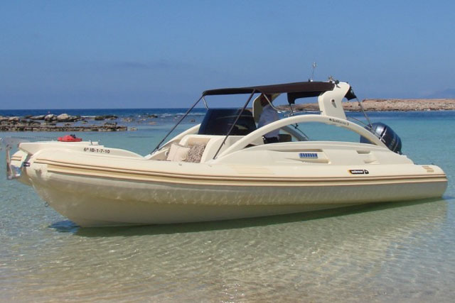 Esta zodiac de 8 metros se puede alquilar desde 900 euros sin IVA/día en temporada baja – patrón incluido-
